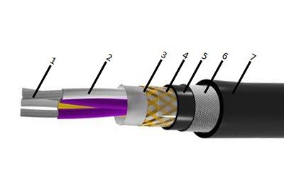 - Жилы скручены пары с шагом скрутки не олее 6 см. Каждая скрученная пара может иметь отдельный экран в виде оплетки из медных луженых проволок (имеет обозначение "Э") или алюмофлекса с луженой дренажной жилой; экраны пар могут быть электрически изолированы между собой; если витые пары не имеют отдельных экранов, то накладывается общий экран в виде оплетки из медной проволоки;